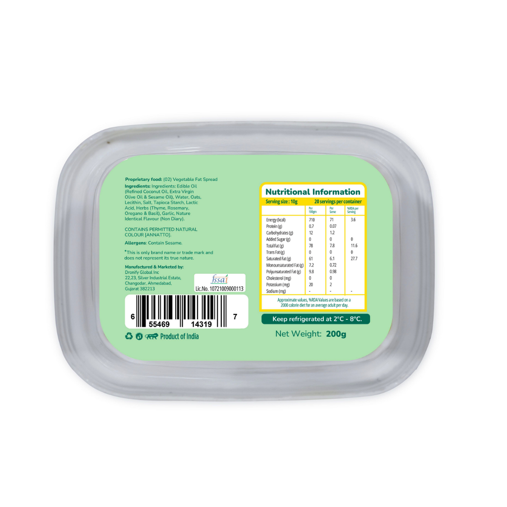 Premium Herbs & Garlic Buttery Spread (Dairy, Cholesterol & Lactose Free, Cashew Based)